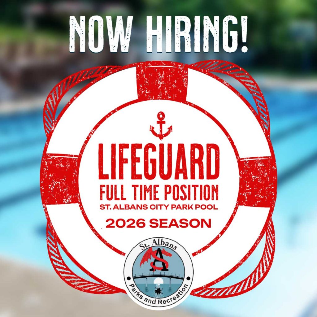 The City of St. Albans Parks & Recreation Department is accepting applications for Lifeguard positions for the 2026 pool season. Several positions are available.